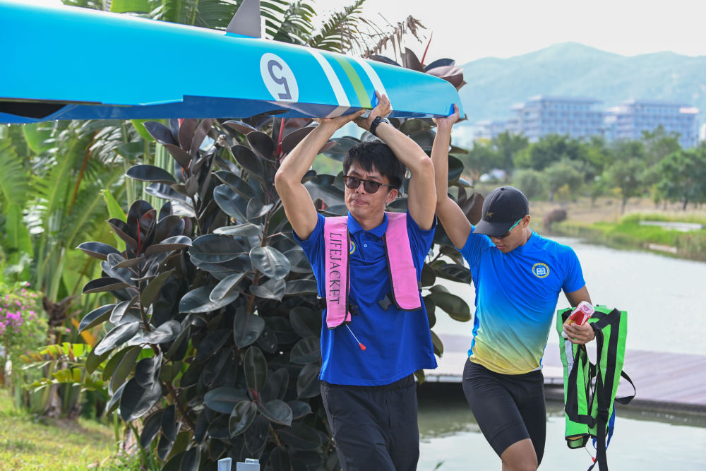 ↑2025年11月1日,来自澳门科技大学的学员在天沐河上训练。新华社记者 胡星宇 摄