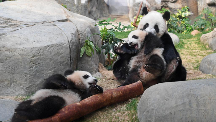 “港产”大熊猫龙凤胎首度与妈妈同见公众 2025-03-22