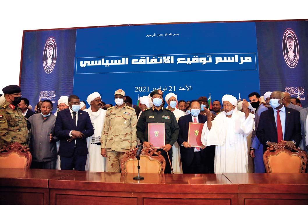 11月21日在苏丹喀土穆拍摄的政治宣言签署仪式