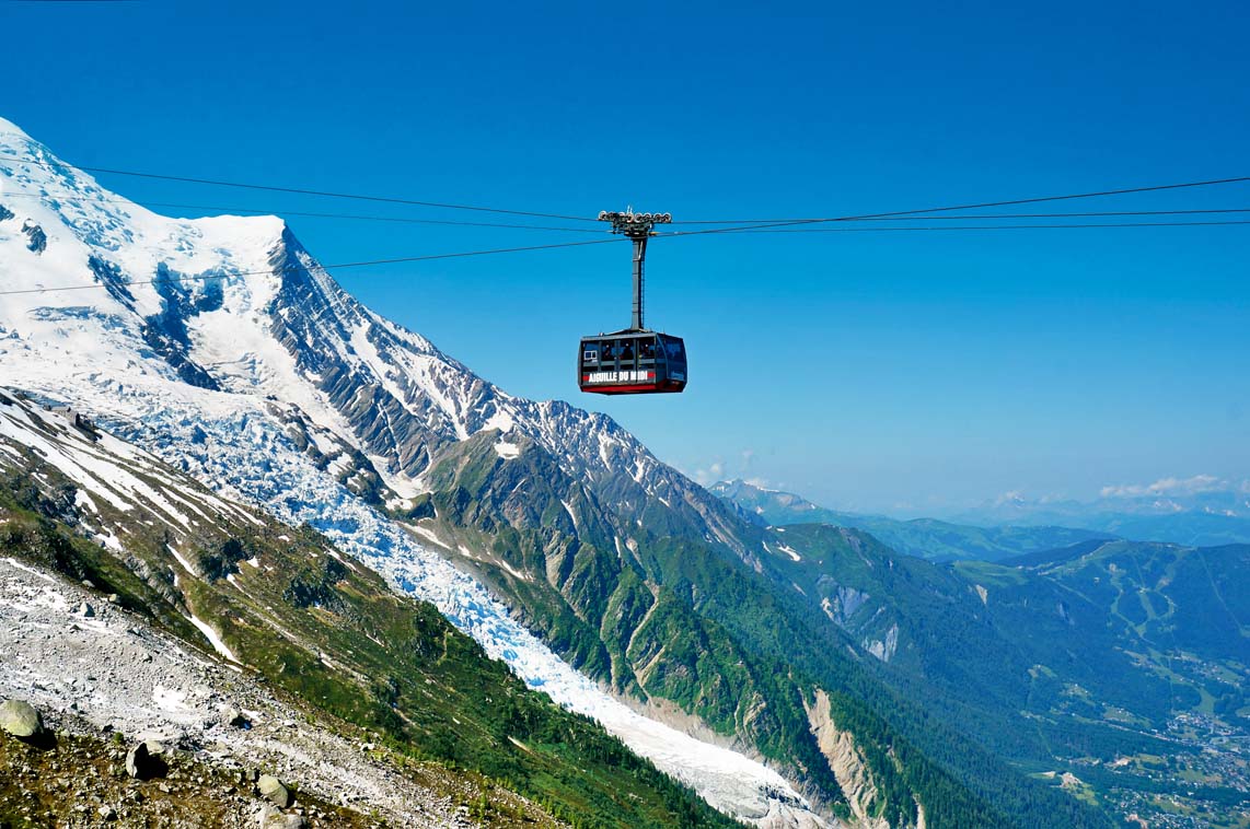 比起去往珠穆朗玛峰的舟车劳顿,坐拥西欧最高海拔的勃朗峰显得平易近人许多,尤其是在修建起了一系列缆车之后。从夏慕尼镇中心的这座双人雕像出发,步行不久就能抵达南针峰缆车的起点站。夏季是此地的旅游旺季,乘坐缆车常常要排队一两个小时甚至更久,无论一日游打卡的匆匆过客,还是盘桓数日的悠游度假者,几乎都会乘坐缆车登上距离勃朗峰最近的南针峰观景台。