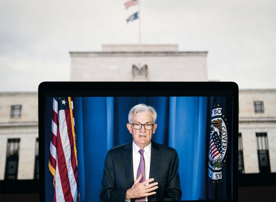 3月16日拍摄的视频画面显示,美联储临时主席鲍威尔在华盛顿出席线上新闻发布会