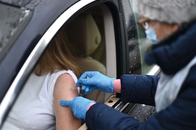 2021年2月8日,在英国圣奥尔本斯的一处“得来速”式疫苗接种中心,