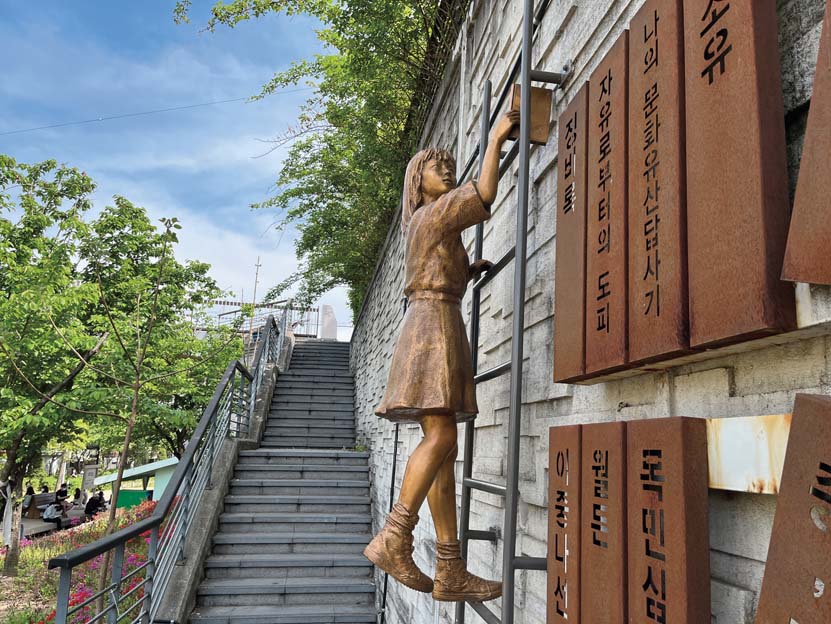 京义线书店街内的“人生100本必读的书”图书馆雕塑