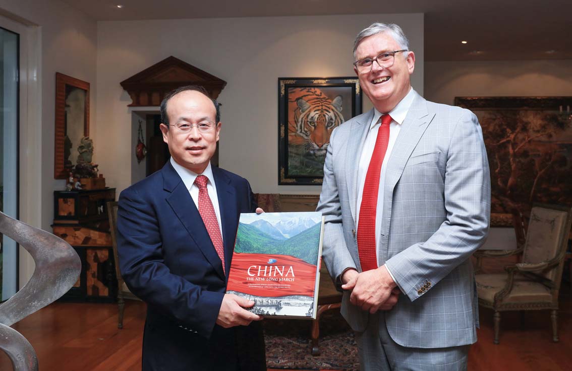 魏华德(右)和中国驻澳大利亚大使肖千合影