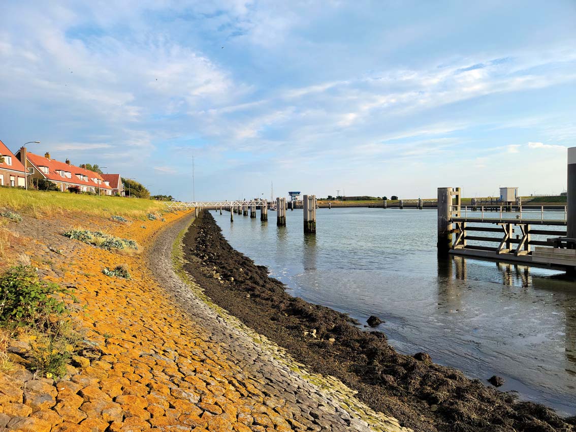 这是8月15日在荷兰阿夫鲁戴克拦海大坝上拍摄的一处防波堤
