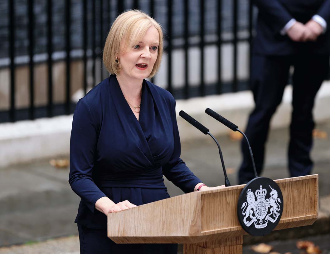 9月6日,新就任的英国首相伊丽莎白·特拉斯在位于伦敦唐宁街10号的首相府发表讲话