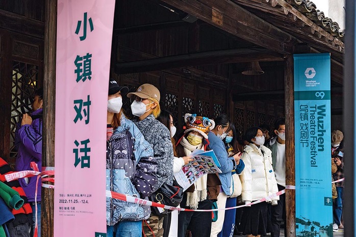 西栅评书场门口排队等待参加小镇对话的观众(乌镇戏剧节供图)