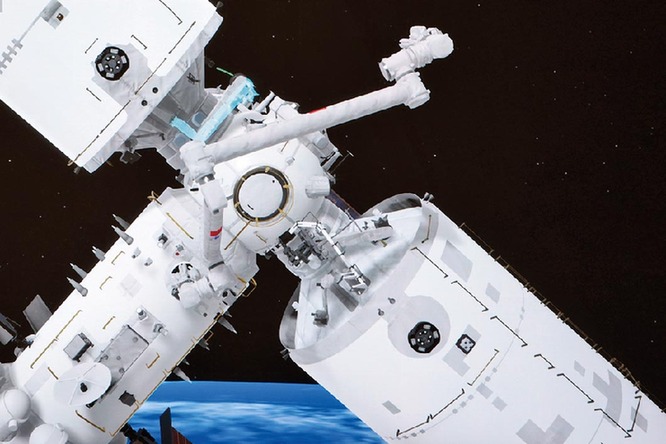 2022年11月3日在北京航天飞行控制中心拍摄的空间站梦天实验舱完成转位的模拟图像