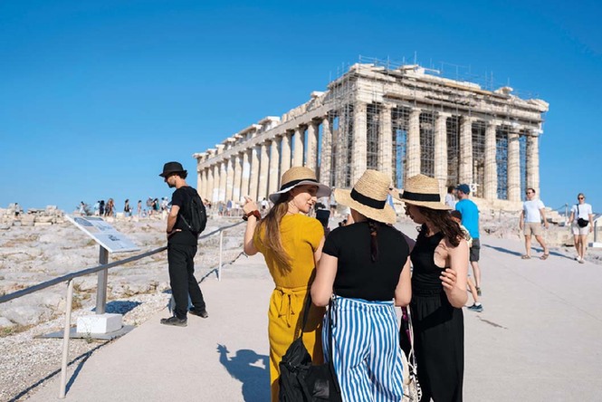 2022年7月27日,游客在希腊雅典游览帕特农神庙