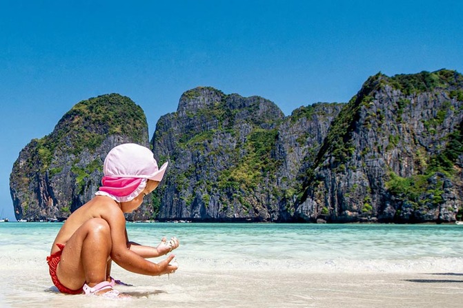 2月16日,小朋友在泰国皮皮岛国家公园玩耍