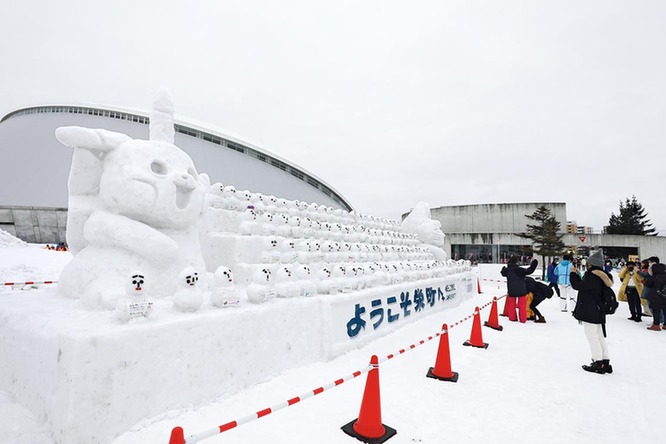 2020年1月31日,人们在日本北海道札幌冰雪节的会场内游玩