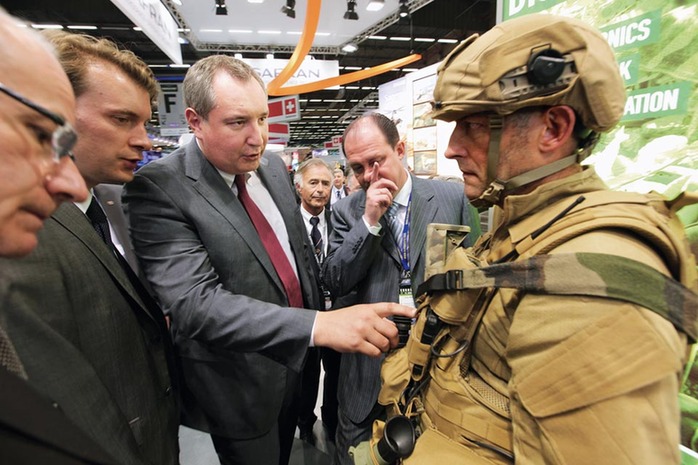 2012年,时任俄罗斯副总理罗戈津在欧洲防务展会上参观一款单兵作战装备