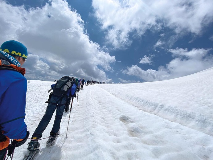 彼得和同学们一起在瑞士爬阿尔卑斯山