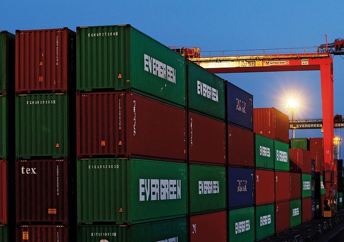 这是2022年2月17日在日本东京一个工业港拍摄的集装箱。日本财务省2022年2月17日公布的初步统计结果显示,