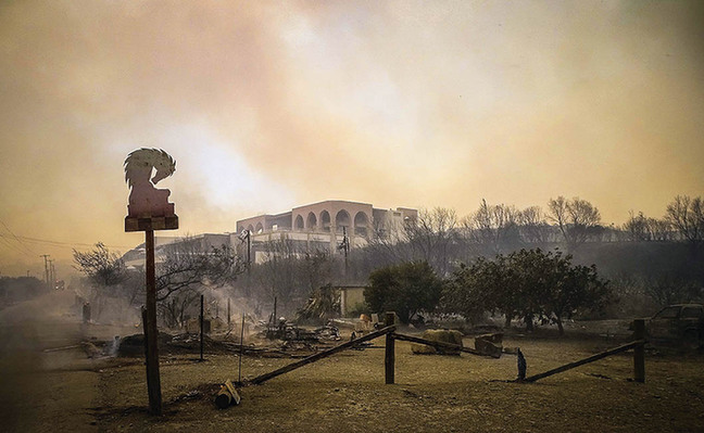 “大火烧起来的那个下午,我就在这个商店里,修道院里有十几位参观者。”回忆起8 月23日那天的情景,在俄西俄斯罗卡斯修道院门外小广场上经营一家食品和纪念品商店的乔治仍然难掩自己的情绪。听说邻近的斯特里村附近野火烧了起来,乔治立即开车到那里去察看火势。他发现野火正迅速朝修道院方向蔓延,便掉头返回修道院报信,大家立即冒着浓烟和火焰,沿着修道院通往外界的唯一道路逃生。