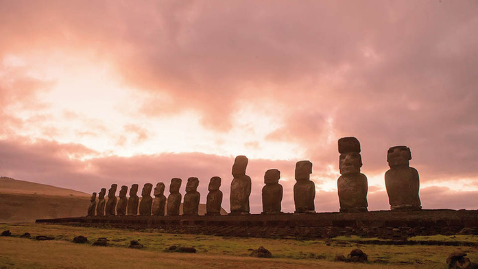 视线离开地中海,来到万里之外的南太平洋。智利复活节岛上,数百尊用大块火山岩雕刻成的古老而神秘的巨型石像屹立在海边,岿然不动,默默守护着这座与世隔绝的孤岛。包括这些表情各异的石像在内的整座复活节岛,于1995年作为国家公园被列入世界遗产名录。联合国教科文组织的科学家称,由于海平面上升及暴风雨掀起的巨浪,复活节岛上的大量石像被海水侵蚀,面临着倒塌的危险,甚至已经倒塌,而到2100年,这些石像可能被海水淹没。