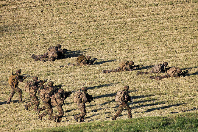 2018年10月30日,在挪威中部城市特隆赫姆附近,士兵参加 “三叉戟接点2018”军演的公开展示活动