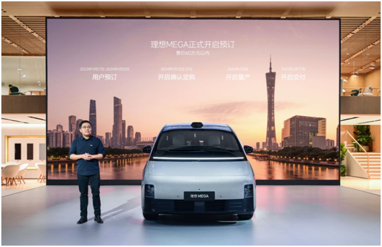 2023年11月17日,理想MEGA在2023广州国际车展完成全球首秀,并同步开启预订,预计售价60万元以内。按照规划,理想MEGA将于12月正式发布,并于明年2月开启量产和用户交付。