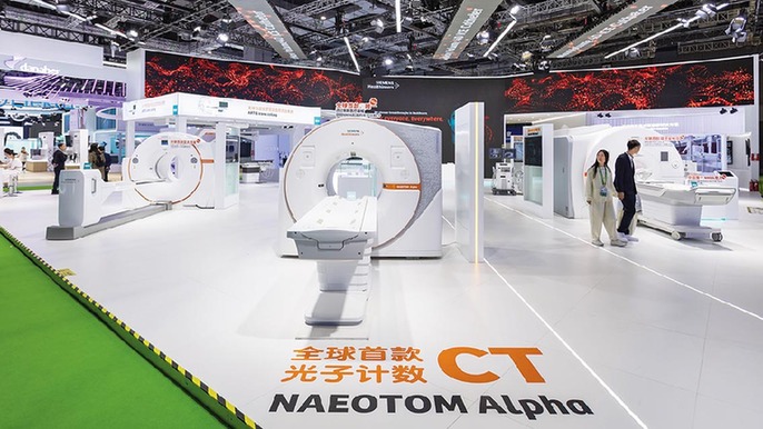 11月8日在第六届进博会医疗器械及医药保健展区拍摄的西门子展位