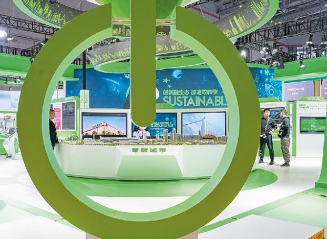 11月9日拍摄的施耐德电气第六届进博会展台展出的“零碳城市”愿景模型