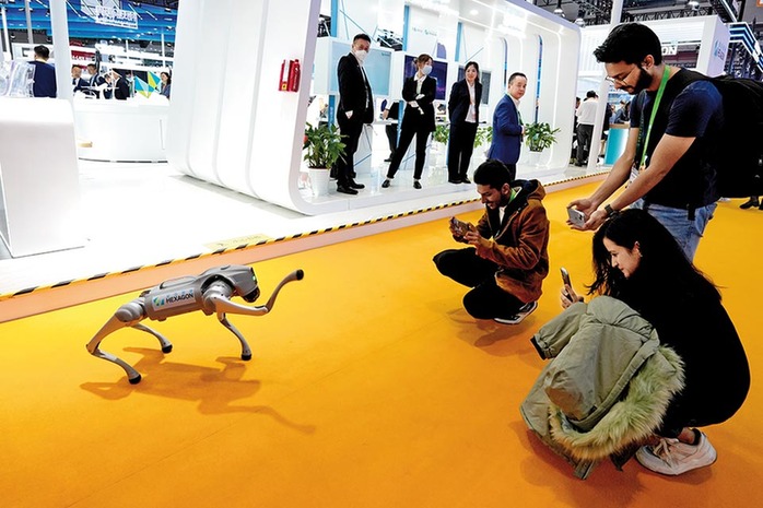 比心、握手、翻跟头……第六届进博会技术装备展区,一只仿真机器狗引起参展者围观。眼尖的观众发现,它正是在杭州亚运会上负责运送铁饼的“网红”。“由于搭载徕卡BLK ARC三维激光扫描仪,它可以自主完成三维实景采集、建模,代替人工进行危险环境作业,大幅降低安全事故发生率。”瑞典海克斯康集团的工作人员介绍,未来这款机器狗还将在矿山地下坑道、野外等各类复杂场景施展“绝技”。