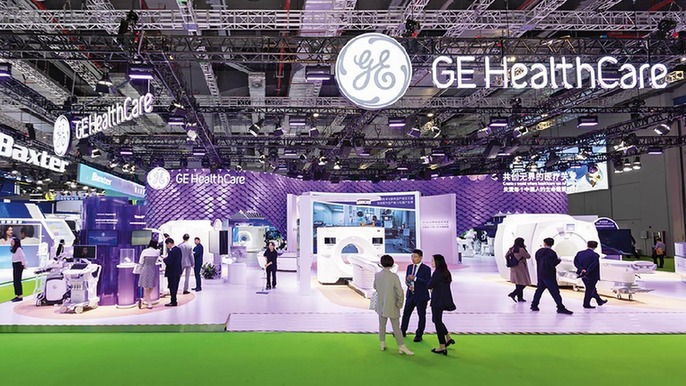 11月8日在第六届进博会医疗器械及医药保健展区拍摄的GE 医疗展位