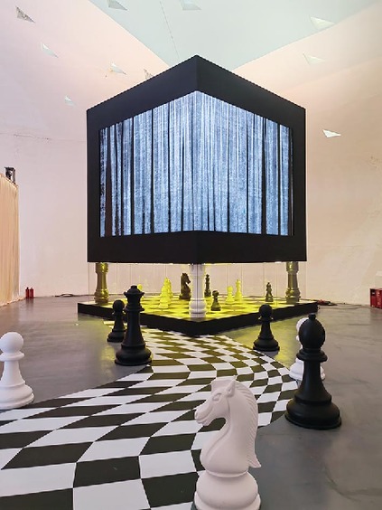 本次展览中,一批导演、策展人、艺术家、三维设计师、CG设计师、硬件交互研发师、AI模型训练师、前后端工程师、游戏程序开发工程师、大模型算法工程师、大模型训练推理优化工程师、NLP算法工程师、强化学习算法工程师、音视频SDK开发、程序化内容生成研发工程师等跨学科创新青年人才云集一堂,让传统文化IP“爱丽丝”获得崭新的数字生命,并以醒目的当代审美图式呼吁艺术自我的觉醒和城市生态的共生。