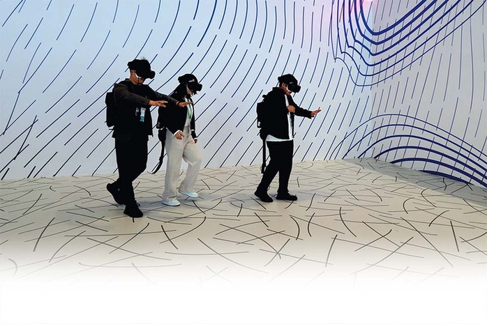 11月7日,在第六届中国国际进口博览会技术装备展区,观众体验“VR行走沉浸剧场”