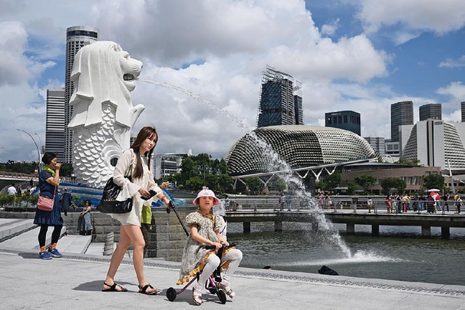 2023年12月21日,游客游览新加坡鱼尾狮公园