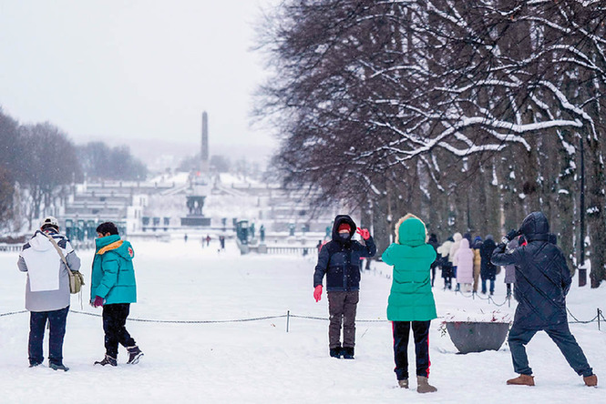 1月2日,人们在挪威奥斯陆维格兰公园游玩
