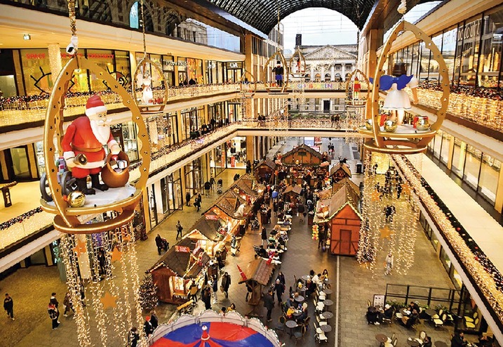 2023年12月21日,人们在德国柏林一家购物中心的迷你圣诞市场休闲