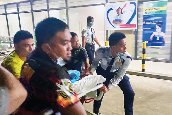 2023年12月2日,在菲律宾武端市一家医院,人们在地震后撤离
