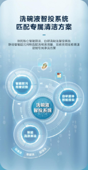 在洁净碗碟的同时,美的晶焰洗碗机还带来更贴心的人性化设计,它拥有自研的液体智能投放技术,能够根据洗涤程序和餐具的污染程度,智能定制专属洗涤方案,并精准控制洗涤剂的投放量,不仅能够提高清洁效率,还能节省洗涤剂更加环保。