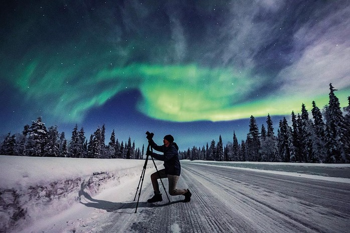 2月10日,一名摄影师在瑞典帕亚拉拍摄美丽的极光