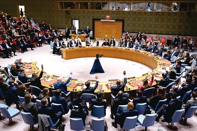 联合国安理会2月20日就阿尔及利亚代表阿拉伯国家提出的要求在加沙地带立即实现人道停火的决议草案进行表决,
