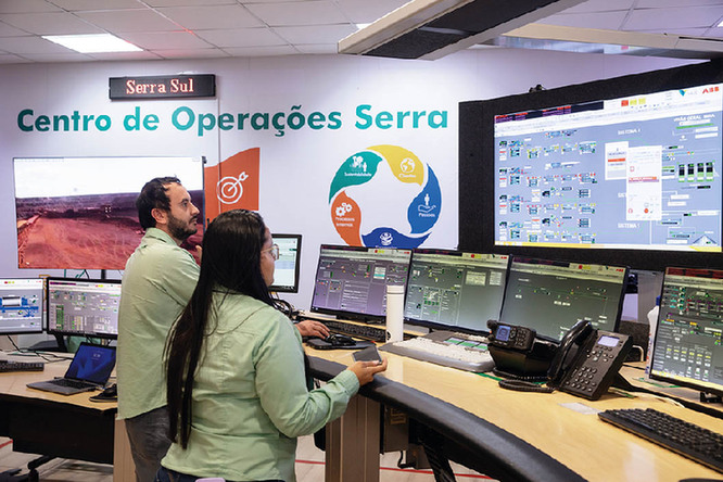 2023年8月3日,巴西淡水河谷公司工作人员在巴西帕拉州卡拉雅斯采矿综合体一处控制中心监控矿山运行状况