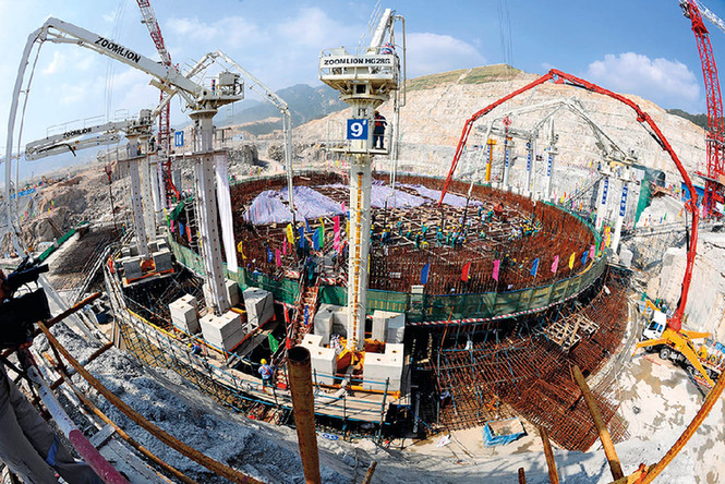 这是广东台山核电1号机组核岛施工现场(资料照片)