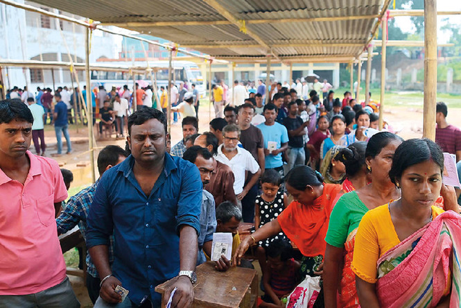 4月19日,在印度特里普拉邦阿加尔塔拉,人们在一处投票站参加投票