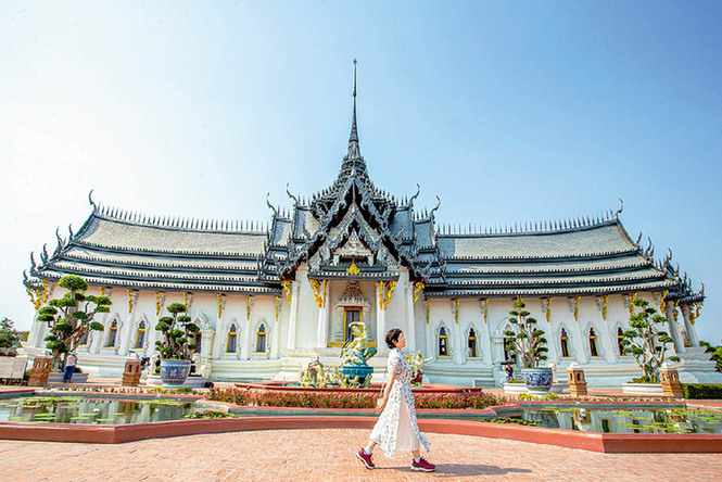 3月1日,中国游客在泰国北榄府暹罗古城游览