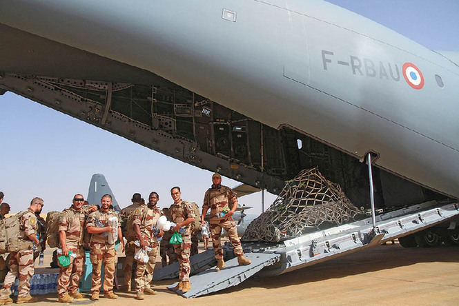 2023年12月22日,在尼日尔首都尼亚美一处军事基地,法国军人登上运输机准备撤离