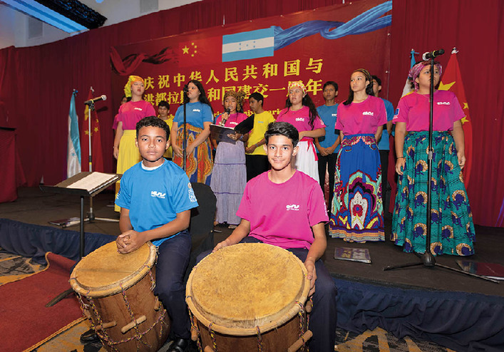 3月22日,演员在洪都拉斯首都特古西加尔巴举行的庆祝中洪建交一周年招待会上表演节目