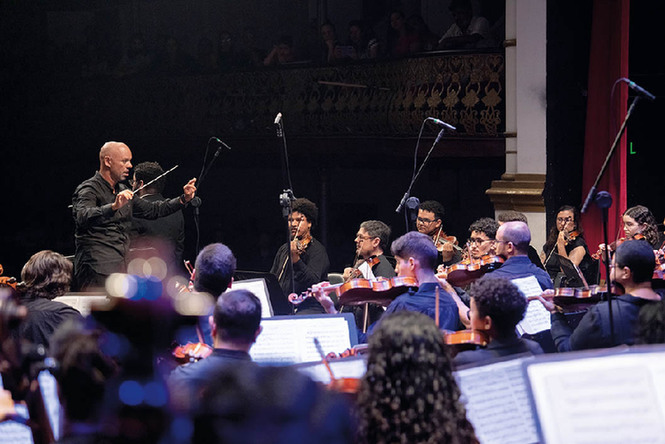6月3日,在巴西北里奥格兰德州纳塔尔的阿尔贝托·马拉尼昂剧院内,北里奥格兰德联邦大学爱乐乐团在