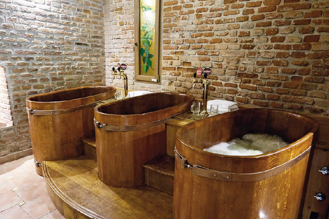 其中一间水疗室放置着两个用橡木制成的啤酒浴缸,另一间更大的房间里有3个浴缸和1个桑拿房。帕饶特介绍说,水疗室的租赁时间一般为1~2小时,每个浴缸可以容纳两名顾客,因此两间水疗室最多可同时服务10名顾客。