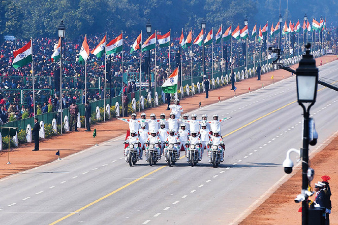 2020年1月26日,在印度新德里,摩托车队在共和国日阅兵式上表演
