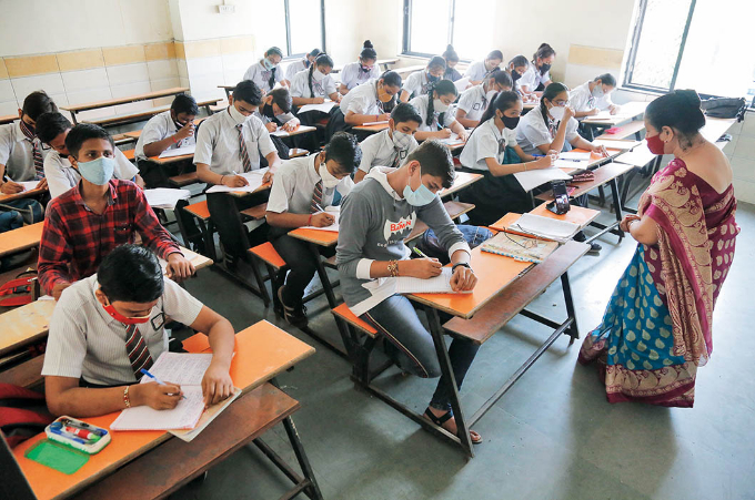 2021年9月1日,学生在印度艾哈迈达巴德的一所学校上课