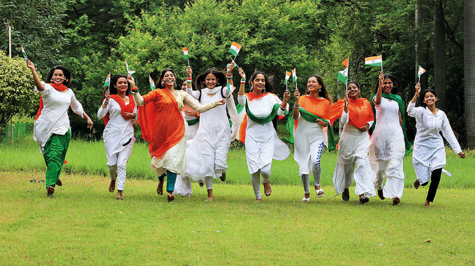 2023年8月14日,妇女们在印度中央邦博帕尔庆祝独立日