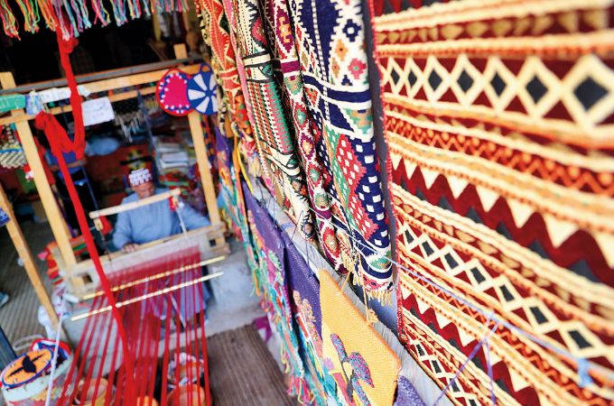 2019年3月17日,在埃及阿斯旺的西苏海勒村,一名男子在展示纺织工艺