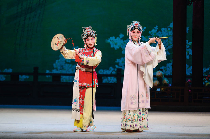 魏春荣(右)与北方昆曲剧院演员刘大馨在《牡丹亭·游园》演出中的剧照