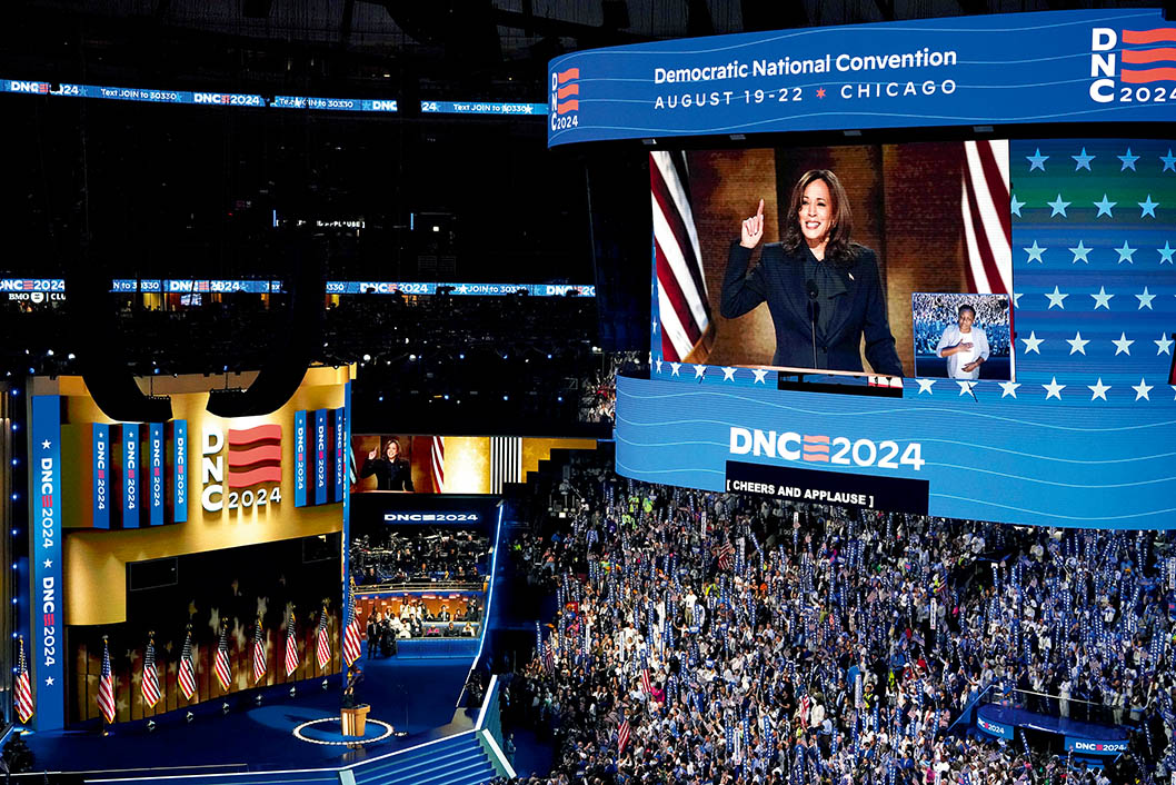 在美国芝加哥,哈里斯在民主党全国代表大会上发言