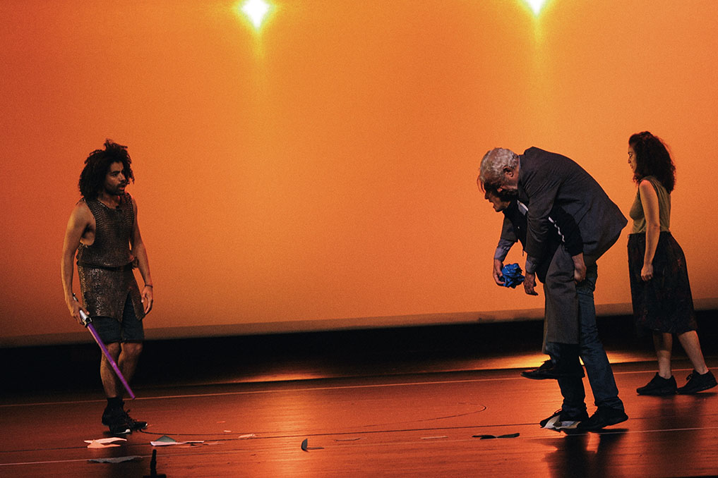 哈姆雷特的故事一遍遍被演绎,巴尔巴的哈姆雷特又是什么样子?他将先后经历丧子与丧父之痛继而创作出《哈姆雷特》的剧作家与剧中人放在同一舞台上,由一名年长女性演员扮演莎士比亚,演出如同一场古老仪式。他对每个角色的悲剧命运给予关怀,包括通常被认为是反派的哈姆雷特的母亲乔特鲁德——当哈姆雷特悲伤地抱着死去的奥菲利亚,乔特鲁德也悲伤地抱着死去的弑兄娶嫂者克劳狄斯。现场放映的影像中还加入了当今世界饱受战争之苦的儿童,巴尔巴把对他们的怜悯与对哈姆雷特和莎士比亚之子的怜悯融合在一起。很多观众看到影像中无助的加沙儿童时,都不禁流下泪水。